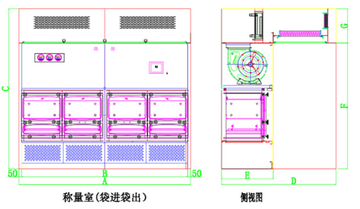 注明:潔凈傳遞稱量室規格尺寸可按客戶要求定做。