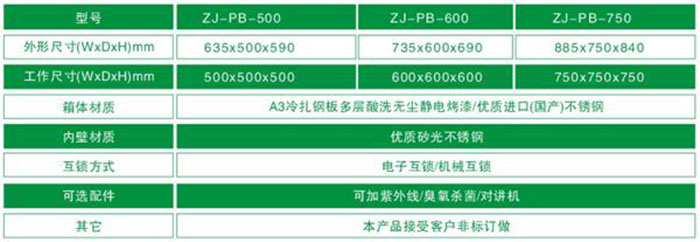 3、落地傳遞窗配4個多角度可調噴嘴,從頂部送風吹淋,配一臺低噪音、大風量風機,電壓:380V 50HZ,面風速大于22-25m/s;