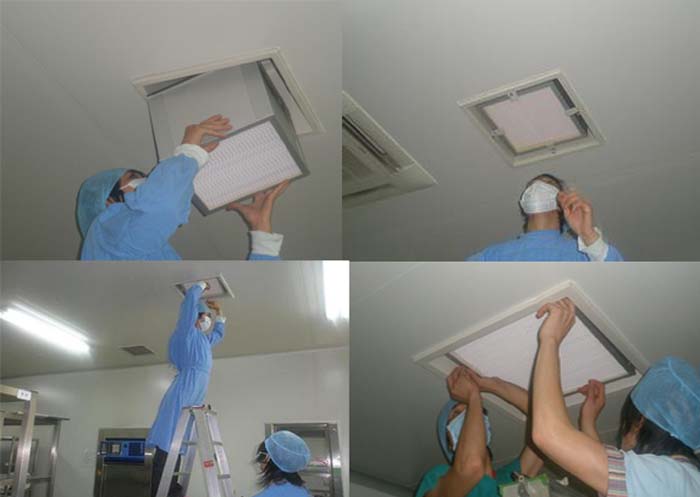 5、高效過濾器安裝時擅長拉住周圍的框架,慢慢送入正壓送風口。不能擅長與斗抵抗效率過濾器過濾系統,防止過濾系統破裂,損害過濾效率。